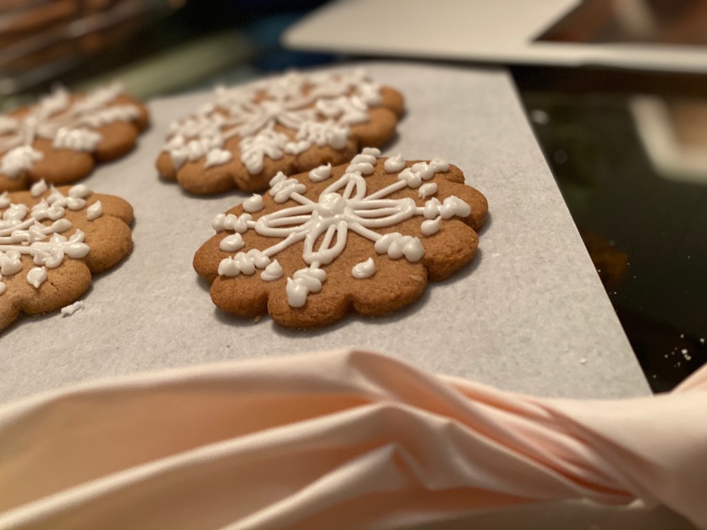 Now this one was definitely a team effort, as my delightfully majestic boyfriend was inclined to try out his cut-out cookie and piping skills. And to be honest, he wasn’t that bad…